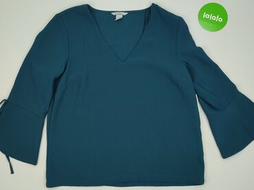 Bluzka damska H&M - Kolor: morski/teal - Fason: lekko taliowana, dekolt w kształcie litery V - Rękawy: 3/4 z rozszerzanymi mankietami, ozdobne troczki - Materiał: 100% poliester (zewnętrzny i pods...