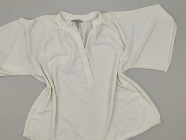 Bluzka damska H&M - Model: elegancka, gładka bluzka z długim rękawem - Kolor: biały/ecru - Dekolt: okrągły z krótką stójką i rozcięciem w kształcie litery V (bez guzików z przodu) - Rękawy: mankie...