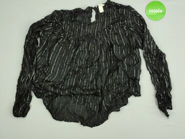 Czarna damska bluzka H&M - Rozmiar z metki: EUR 40 / US 10 / CA 10 / MX 10 / CN 170/92A - Materiał: 100% poliester (informacja z metki) - Kolor: czarny - Krój: lekko wydłużony tył, zwiewny, półprz...