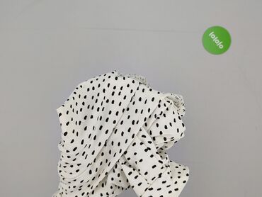 Bluzka damska H&M - Krój: koszulowy, zapinana na guziki z przodu - Rękaw: krótki - Kołnierzyk: klasyczny - Wzór: drobne czarno‑białe kropki/„stempelki” na białym tle, gęsty deseń all-over - Materi...