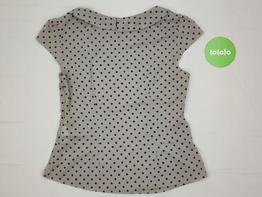 Bluzka H&M w grochy - Kolor: czarny w białe kropki - Rozmiar z metki: EU 38 / US 8 / CN 170/88A - Krój: taliowana, z krótkim rękawem - Dekolt: okrągły z szeroką patką/kołnierzykiem - Detale: zasze...