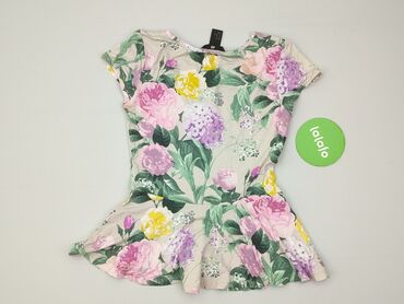 Bluzka damska H&M z krótkim rękawem - Marka: H&M - Rozmiar z metki: EUR 34 (US/CA 2) - Fason: luźniejszy T-shirt z dekoltem w serek, zaokrąglony dół, tył nieco dłuższy - Wzór: kwiatowy, wielobarwn...Stan:
