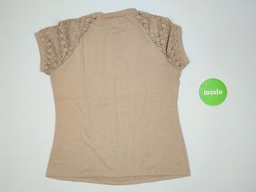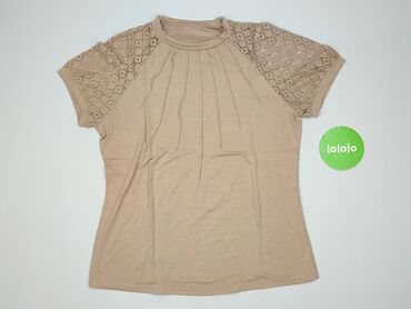 Bluzka damska z koronką - Krój: luźny, z krótkim rękawem typu cap - Dekolt: okrągły z ozdobnymi, ażurowymi wstawkami koronkowymi z motywem kwiatowym z przodu i z tyłu - Rękawy: koronkowe wstawki z...Stan: