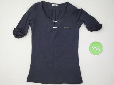 Granatowa bluzka damska z rękawem o długości 3/4, charakteryzująca się okrągłym dekoltem. Na wysokości klatki piersiowej znajduje się ozdobna, niebieska koronka, nadająca bluzce eleganckiego wygląd...Stan: