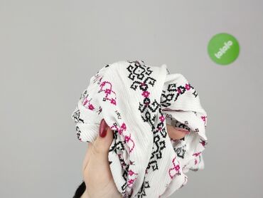 - Wzór: etniczny/geometryczny, pionowe pasy w kolorach czarnym i fuksji na białym tle.