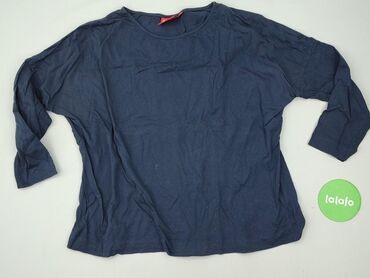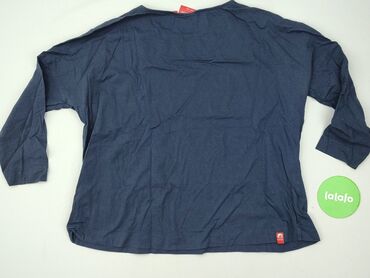 Granatowa bluzka damska z długim rękawem - Fason: prosty, lekko taliowany - Dekolt: w kształcie litery V z przodu, klasyczny z tyłu - Rękaw: długi - Materiał: 100% bawełna (metka) - Rozmiar z metk...