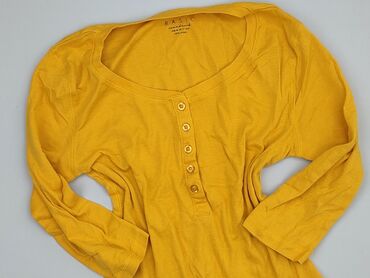Bluzka damska w kolorze musztardowym - Krój: luźny, lekko pudełkowy - Dekolt: okrągły - Rękawy: 3/4, szerokie z delikatnym marszczeniem przy główce - Długość: do bioder, przód minimalnie krótszy n...