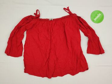 Czerwona bluzka damska Orsay - Marka: Orsay (metka widoczna na zdjęciu) - Fason: luźny, z obniżoną linią ramion typu nietoperz - Rękaw: do łokcia, zakończony szerokim mankietem - Dekolt: szeroki, ...
