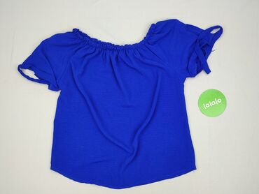 Bluzka hiszpanka w kolorze jasnego błękitu - Krój: luźna bluzka z dekoltem typu hiszpanka (ściągacz z delikatną falbanką), krótkie bufiaste rękawy zakończone gumką i falbanką. - Materiał: 95% poli...