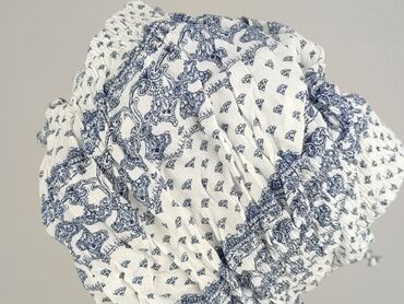 Letnia bluzka na ramiączkach F&F - Kolor: biała z granatowym wzorem paisley - Krój: lekko rozkloszowany top z odcinaną talią i wiązanym paskiem - Ramiączka: cienkie, regulowane - Dekolt: w kształc...