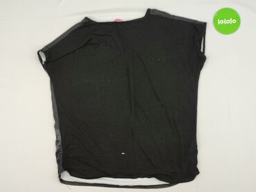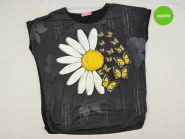 Bluzka damska House Brand - Rozmiar: L (metka widoczna na zdjęciu) - Krój: t-shirt z krótkim rękawem - Materiał: lekka, półprzezroczysta siateczka/mesh - Wzór: czarne tło w gęsty print białych sto...