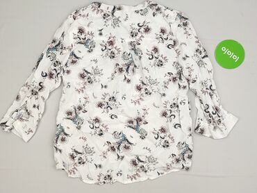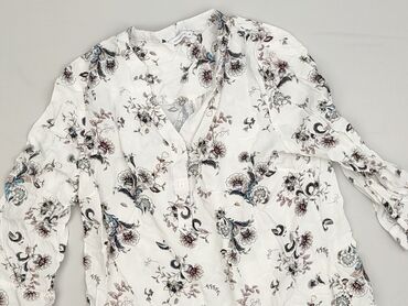 Bluzka damska z długim rękawem, rozmiar 38. - Kolor: biały z czarno‑szarym, kwiatowym nadrukiem na całej powierzchni - Krój: lekko luźny, zaokrąglony dół, tył nieco dłuższy - Dekolt: w serek z krót...
