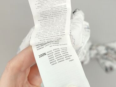 Bluzka damska S’Za - Kolor: biały z drobnym, geometrycznym wzorem w odcieniach czerni i jasnego różu - Materiał: 100% wiskoza (lekka, przewiewna, miękka) - Krój: luźniejszy, lekko wydłużony, z del...Stan: