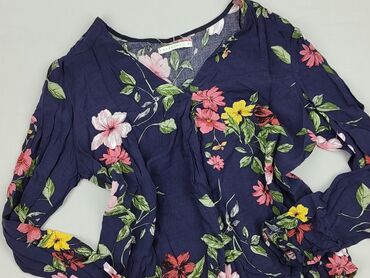Bluzka damska HOUSE, rozmiar S. - Kolor: czarny z kwiatowym nadrukiem w odcieniach pudrowego różu, bieli i zieleni - Fason: z długim rękawem, dekolt w kształcie litery V - Materiał: lekki, miękki,...