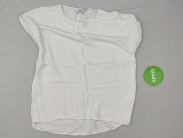 Biała bluzka damska z krótkim rękawem - Kolor: biały - Krój: luźny, lekko pudełkowy - Dekolt: szeroki, zaokrąglony - Rękawy: krótkie - Tył: pionowa zakładka/delikatne pęknięcie dekoracyjne - Długo...Stan: