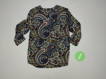Bluzka damska HOUSE, rozmiar L. - Fason: lekko luźny, z dekoltem w serek i zapięciem na kilka guzików z przodu - Rękawy: długie, marszczone, mankiety zapinane na guziki - Dół: zaokrąglony - Wzór: ...