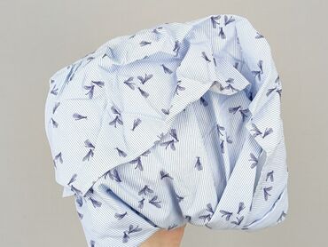 Bluzka damska HOUSE, rozmiar M - Krój: luźny T-shirt z okrągłym dekoltem - Rękawy: krótkie, z dekoracyjnymi wiązaniami na ramionach - Wzór: białe tło w niebieskie pionowe paski, nadruk ptaków na c...