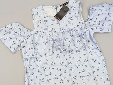 Bluzka damska HOUSE, rozmiar M. - Kolor: jasny błękit - Fason: odsłonięte ramiona (cold shoulder) - Rękawy krótkie z falbaną i marszczeniem/gumkowaniem na bicepsie - Dekolt okrągły - Z tyłu zapięc...