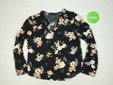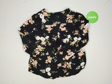 Bluzka damska HOUSE collection, rozmiar XS. - Fason: lekko luźny, z dekoltem w serek - Rękawy: długie, zakończone delikatną gumką/marszczeniem - Wzór: gęsty, kwiatowy print na czarnym tle (biel, ż...