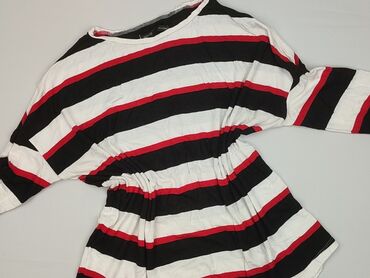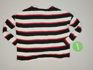 Bluzka damska House, rozmiar M. - Fason: prosty, z długim rękawem - Wzór: biało‑czarne, cienkie poziome paski w górnej części; dół oraz mankiety w kolorze czarnym (kontrastowe wstawki) - Dekolt: o...