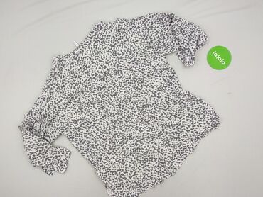 Bluzka damska HOUSE, rozmiar L. - Fason: lekko luźny, z dekoltem w serek i zapięciem na kilka guzików z przodu - Rękawy: długie, marszczone, mankiety zapinane na guziki - Dół: zaokrąglony - Wzór: ...Stan: