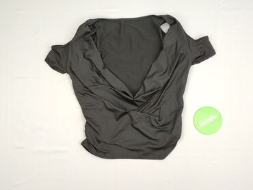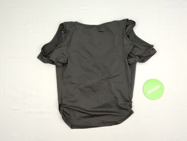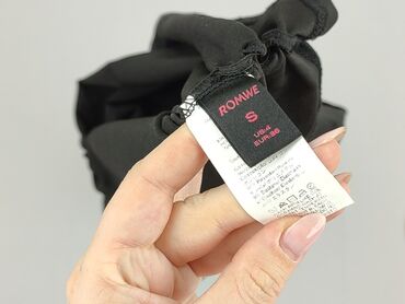 Krótki rękawCzarna bluzka marki Romwe w rozmiarze S. Bluzka ma krótkie rękawy i jest w idealnym stanie. Fason bluzki jest luźny, z drapowaniem z przodu, co dodaje jej elegancji. Wykonana z materiału, który dobrze się układa.
