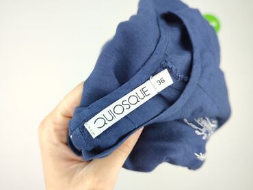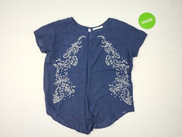 Krótki rękawGranatowa bluzka marki Quiosque w rozmiarze 36. Bluzka jest używana, ale w bardzo dobrym stanie. Posiada krótki rękaw i okrągły dekolt. Z przodu bluzki znajdują się ozdobne, białe hafty.