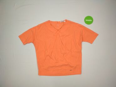 Pomarańczowa bluzka marki Quiosque w rozmiarze 36. Bluzka ma krótkie rękawy i oryginalny krój z dekoracyjnym marszczeniem z przodu. Wykonana z lekkiego materiału, idealna na ciepłe dni.