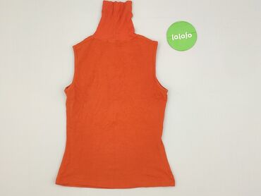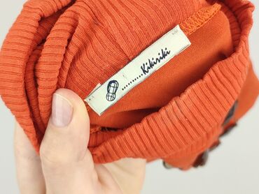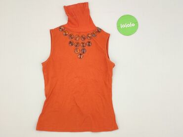 Bez rękawówPomarańczowa bluzka bez rękawów marki Kikiriki z golfem. Dekolt zdobi aplikacja z okrągłych, brązowych kamieni. Idealna na cieplejsze dni.