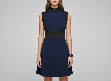 - Fason: góra dopasowana, dół lekko rozkloszowany A-line