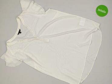 Biała bluzka damska z krótkim rękawem, rozmiar XXL. - Krój: dekolt w serek zdobiony ażurową koronką, pionowa koronka na przodzie, lekko bufiaste rękawy z marszczeniem i dekoracyjną zakładką. - Mat...Stan: