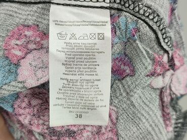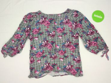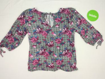 Bluzka damska YES NO, rozmiar M - Krój: luźna bluzka z krótkim rękawem, dekolt w serek, delikatne falbanki przy kołnierzu i na dole - Wzór: czarny materiał w drobne białe kropeczki z różanym motyw...