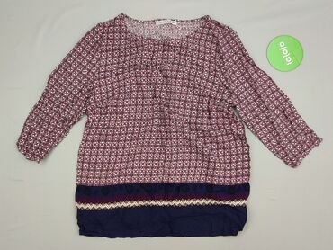 Bluzka damska Mark&Day, rozmiar L - Kolor: ciemna czerwień/burgund - Wzór: drobne, kwiatowe nadruki w bieli, różu i fioletach - Krój: luźny, zaokrąglony dół, dekolt w serek z delikatną zakładką z ...