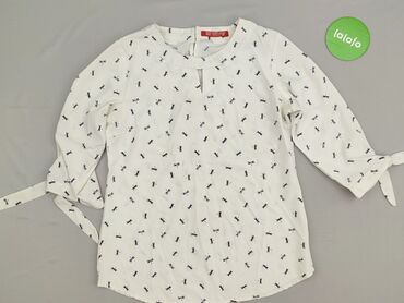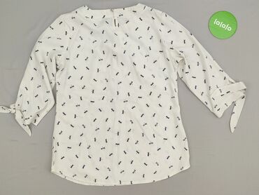 Bluzka damska z nadrukiem ważek - Kolor: biały z szarym, subtelnym wzorem ważek - Krój: luźny, prosty; dół zakończony gumką zbierającą materiał - Rękawy: 3/4, proste - Dekolt: okrągły/łódka - Zapi...