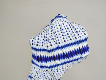 Długi rękawBiało-niebieska bluzka damska z długim rękawem, ozdobiona wzorami tie-dye oraz drobnymi kropkami. Model z elastycznym dekoltem typu Carmen, który można nosić odsłaniając ramiona. Rękawy i dół bluzki są luźne, zakończone gumką, co nadaje całości swobodny charakter. Lekka i przewiewna, idealna na codzienne stylizacje.