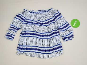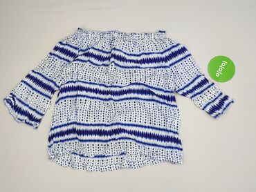 Niebieska bluzka damska z długim rękawem, zdobiona białymi i granatowymi wzorami. Luźny fason z dekoltem typu Carmen i gumką w pasie zapewnia wygodę noszenia i swobodę ruchów. Idealna do casualowyc...