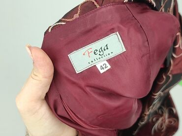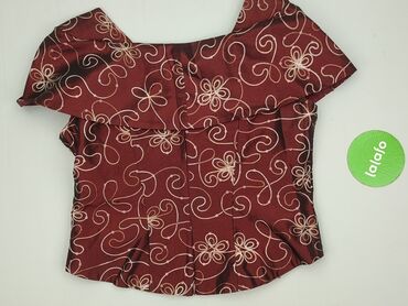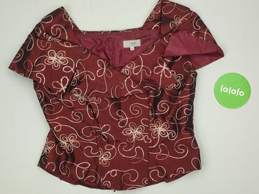 Krótki rękawElegancka bluzka damska "Fega collection" w kolorze bordowym z beżowymi haftami o falistym i kwiatowym wzorze. Bluzka posiada dekolt w kształcie litery V, krótkie rękawy i jest zapinana na zamek błyskawiczny z tyłu, co zapewnia wygodne dopasowanie. Idealna na specjalne okazje lub do uzupełnienia eleganckiej stylizacji. Rozmiar 42.
