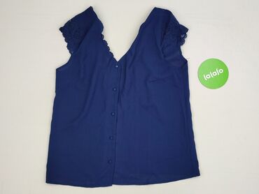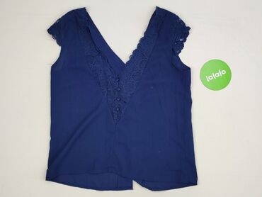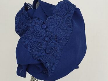 Bez rękawówBluzka damska w kolorze granatowym z dekoltem w kształcie litery V. Przód ozdobiony jest koronkowymi wstawkami, które dodają jej elegancji. Bluzka posiada krótkie, koronkowe rękawy i zapięcie na guziki, które biegnie wzdłuż dekoltu. Wykonana jest w 100% z poliestru, co zapewnia lekkość i przewiewność, idealna na codzienne stylizacje.