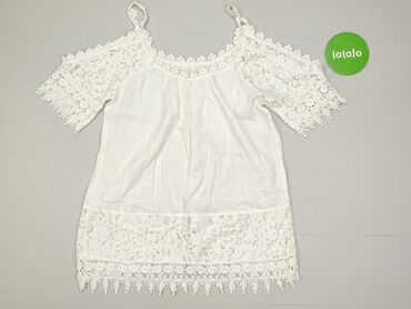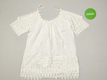 Bluzka damska z ażurowej bawełny, rozmiar S (EUR/US S). - Kolor: biały, haft angielski z drobnymi wycięciami i subtelnym, wytłaczanym wzorem. - Krój: prosty, lekko luźny. - Rękawy: 3/4, bufiaste...