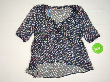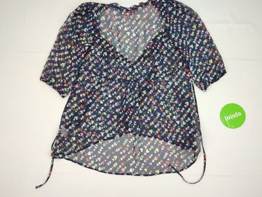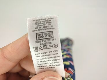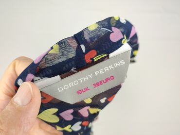 Bluzka damska marki Dorothy Perkins z długimi rękawami, ozdobiona wzorem w odcieniach czerni, bieli i niebieskiego. Charakteryzuje się okrągłym dekoltem z delikatnym marszczeniem oraz elastycznym ś...