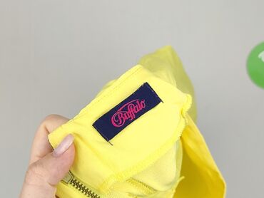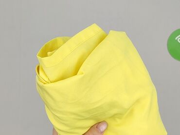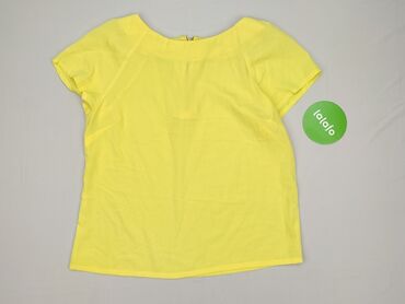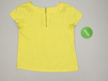 Jasnożółta bluzka damska z krótkim rękawem marki Reserved. Charakteryzuje się delikatnym, pionowym wzorem w paski oraz eleganckim kołnierzykiem. Z przodu bluzki znajduje się ozdobna falbanka wzdłuż...