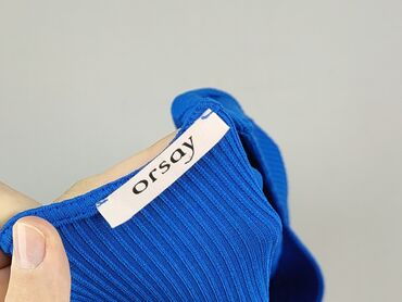 Długi rękawBluzka damska marki Orsay w intensywnym, niebieskim kolorze. Charakteryzuje się kwadratowym dekoltem i długimi rękawami. Rękawy wykończone są wiązaniami z czarnymi tasiemkami, dodającymi jej unikalnego charakteru. Materiał jest prążkowany, co nadaje bluzce elastyczności i dopasowania do sylwetki. Idealna do stylizacji casualowych oraz bardziej eleganckich zestawień. Charakterystyka: Marka: Orsay Kolor: Niebieski Rodzaj dekoltu: Kwadratowy Długość rękawa: Długi rękaw Wykończenie rękawów: Wiązania z tasiemkami Wzór materiału: Prążkowany Materiał: Elastyczny Przeznaczenie: Casual, eleganckie stylizacje Styl: Dopasowany Sezon: Całoroczny Pielęgnacja: Łatwa w utrzymaniu Krój: Slim fit Zapięcie: Brak Fason: Klasyczny Typ: Bluzka