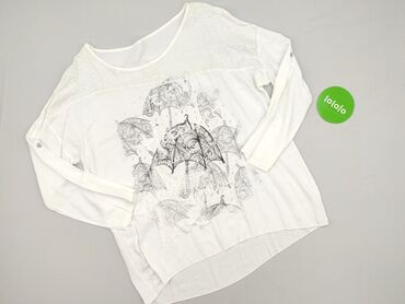 Bluzka damska z długim rękawem, biała, z koronką - Krój: prosty, lekko luźny, okrągły dekolt - Rękawy: długie - Zapięcie: półguziki z tyłu pod szyją - Detale: bogate, ażurowe wstawki koronkowe z p...