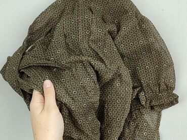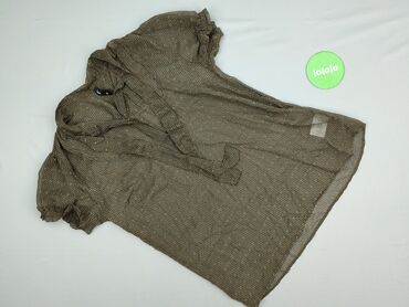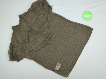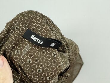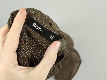 Krótki rękawBluzka damska marki Flame w rozmiarze XXL, wykonana w 100% z poliestru. Materiał w kolorze brązowym ozdobiony jest drobnym, powtarzalnym wzorem. Bluzka posiada krótkie, bufiaste rękawy oraz dekolt wiązany na kokardę. Idealna do noszenia na co dzień, a także na specjalne okazje, zapewniając swobodę i komfort.