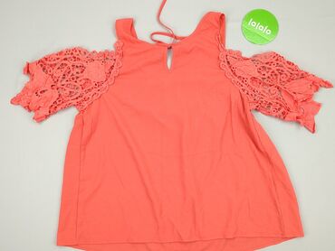 Bluzka damska w kolorze koralowym - Materiał: 70% bawełna, 30% jedwab (etykieta „Made in Italy”) - Dekolt w kształcie litery V z koronkową wstawką z tyłu - Krótkie rękawy z możliwością podpięcia g...