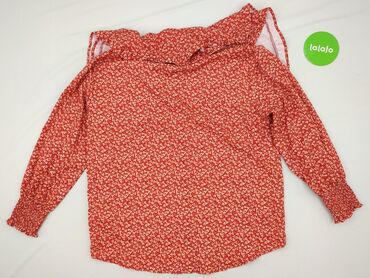 Długi rękawCzerwona bluzka damska marki Shein w rozmiarze L, wykonana w 100% z poliestru. Bluzka charakteryzuje się kwadratowym dekoltem z falbankami, zapinana na guziki z przodu i długimi rękawami zakończonymi elastycznymi mankietami. Dominujący kolor czerwony z beżowym wzorem w koniczynki nadaje bluzce unikatowy wygląd. Nadaje się do noszenia na co dzień, a także na bardziej formalne okazje. Można ją łączyć z różnymi elementami garderoby, tworząc zarówno swobodne, jak i eleganckie stylizacje. Bluzka jest łatwa w pielęgnacji, można ją prać w pralce w zimnej wodzie.Idealny stan.