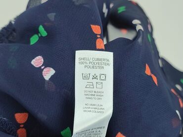 Krótki rękawLekka bluzka damska w kolorze granatowym, z krótkimi rękawami. Charakteryzuje się wzorem w kolorowe kokardki (pomarańczowe, zielone, białe, różowe). Bluzka ma elastyczną talię, która podkreśla sylwetkę, oraz okrągły dekolt z rozcięciem na plecach zapinanym na guzik. Wykonana w 100% z poliestru, co zapewnia jej lekkość i łatwość w pielęgnacji. Idealna na co dzień.