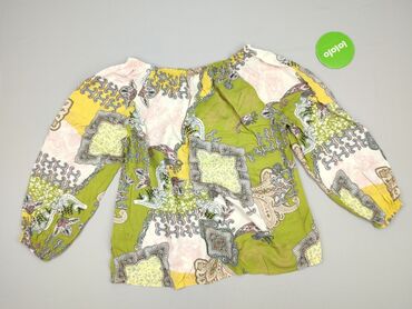 Bluzka damska z długim rękawem w kwiecisto‑paisleyowy wzór - Krój: luźny, zaokrąglony dół (dłuższy tył), lekko opuszczone ramiona - Dekolt: w kształcie litery V, z krótką listwą i kilkoma guzikami...Stan: