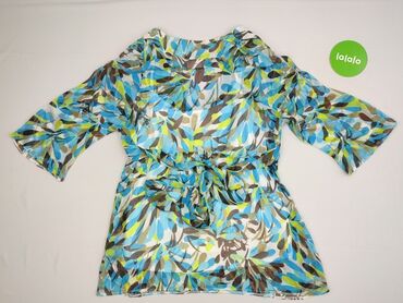Bluzka damska Wallis, rozmiar XL. - Krój: luźny, lekko A‑linia; dekolt karo z gumką i wiązaniem; krótkie, falujące rękawy. - Tkanina: cienka, przewiewna, półprzezroczysta. - Wzór: botaniczny – wiś...