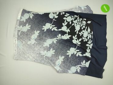 Sukienka damska z krótkim rękawem, w kolorze granatowym z białymi wzorami kwiatowymi na górnej części. Sukienka posiada okrągły dekolt i elastyczny pas w talii, który podkreśla sylwetkę. Dolna częś...
